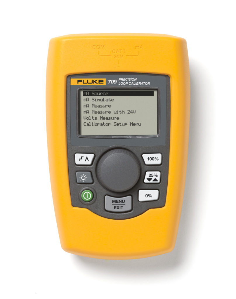 The Fluke 709H kalibrator is gebouwd rondom een gebruiksvriendelijke interface met een ‘Quick-Set’-encoderdraaiknop. Dit instrument verkort de tijd van het meten, of genereren, van spanning of stroom en het voeden van een lus. De beschermende holster past goed in de hand van de monteur en het grote display met achtergrondverlichting kan gemakkelijk worden afgelezen, zelfs in donkere, krappe werkomgevingen. De 709H biedt het volgende: